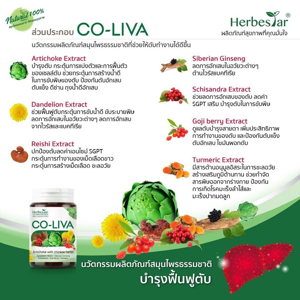 ซึ่ง CO-LIVA มีส่วนช่วยดูแลและบำรุงตับ เหมาะสำหรับมีผู้ที่มีตับอักเสบ เอนไซม์ตับสูง (SGOT,SQPT), ผู้ที่ดื่มสุราหรือสูบบุหรี่เป็นประจำ, ผู้ที่รับประทานยาเคมีหรือฮอร์โมนมานาน, ผู้ที่สัมผัสยาฆ่าแมลงหรือที่มีพิษสะสมในร่างกาย , ผู้ที่มีอาการผื่นแพ้ คันผิวหนังเรื้อรัง ซึ่งวิธีการรับประทานคือ สำหรับผู้ที่มีตับอักเสบ ค่าเอนไซม์ตับสูง (วันละ2แคปซูล หลังอาหาร เช้าและเย็น) หากสนใจสินค้าสามารถสั่งซื้อได้ที่ Line@ : @Maxxlife หรือ @Wellgate ได้เลยค่ะ