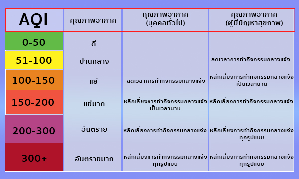 จะเห็นได้ว่า ค่าปริมาณฝุ่นที่เหมาะกับการใช้ชีวิต คือ 0-50