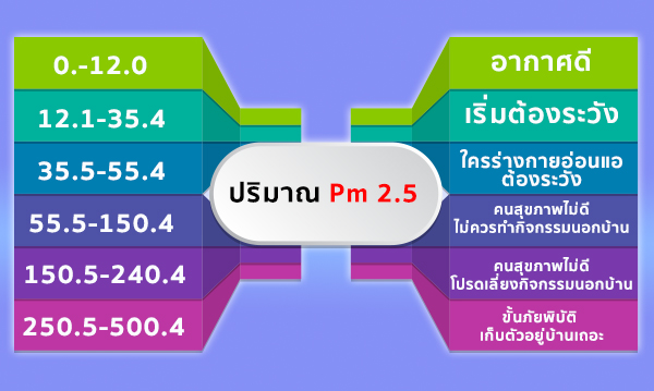 โดยใช้ค่า Pm เป็นหลัก (Particulate Matters) เป็นหลักในการวัดคุณภาพ